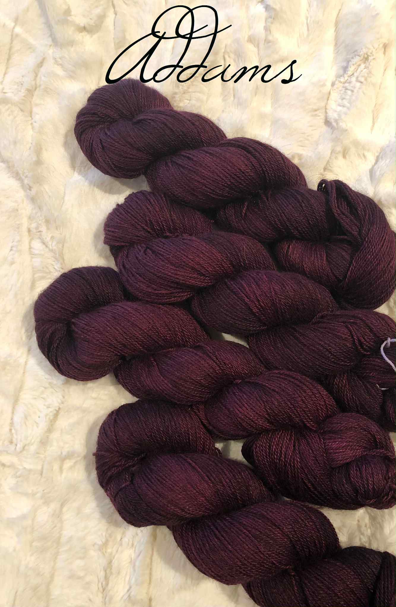 Eksklusiv Alpakka. Farge: Addams. Fargen er melert - nyanser i burgunder. Får et rustikt uttrykk.