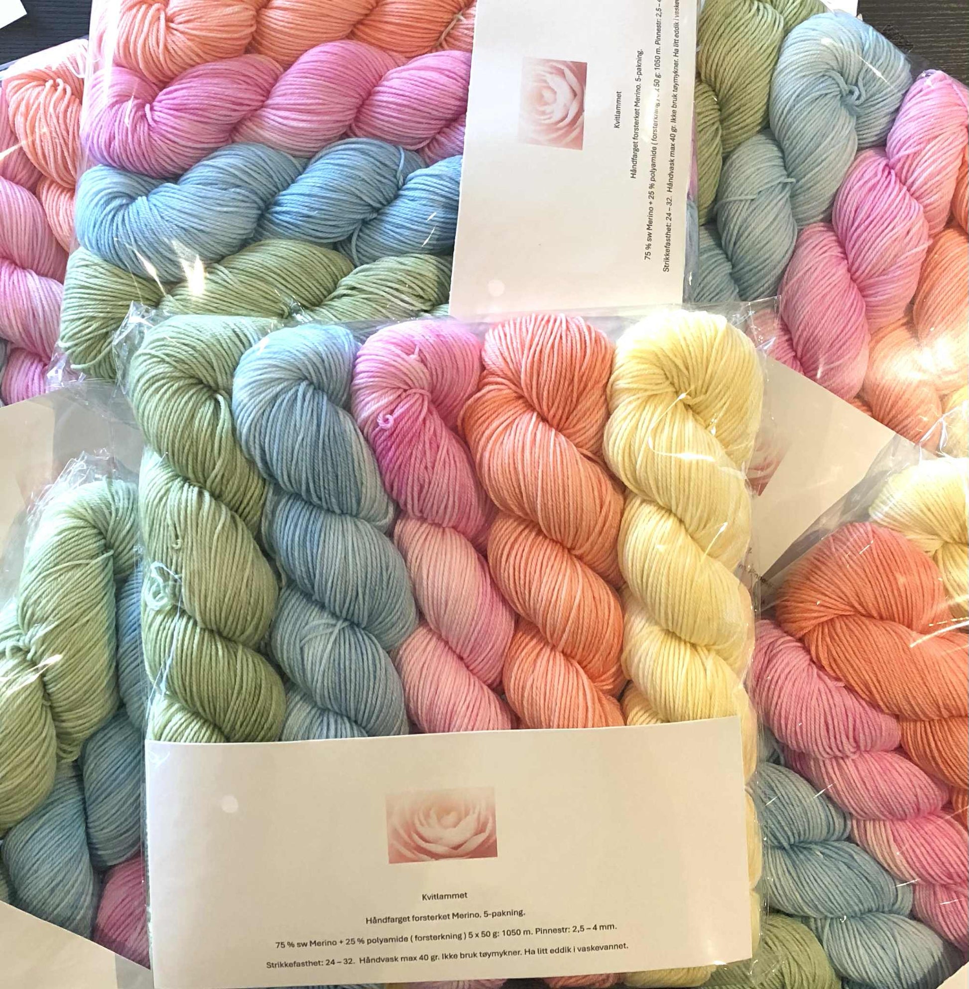 5 nydelige melerte hesper i forskjellige farger - perfekt til strukturstrikk da mønsteret kommer veldig tydelig frem.