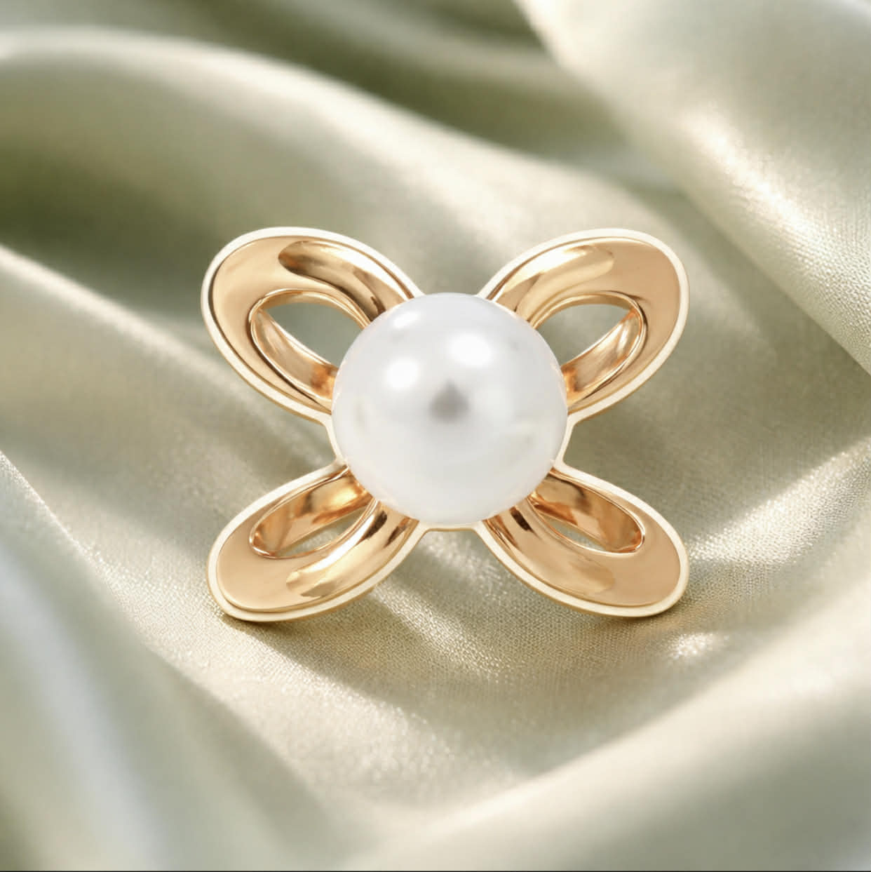 Åpningene under perlen holder skjerfet på plass samtidig som den fungerer som en subtil og elegant detalj.
