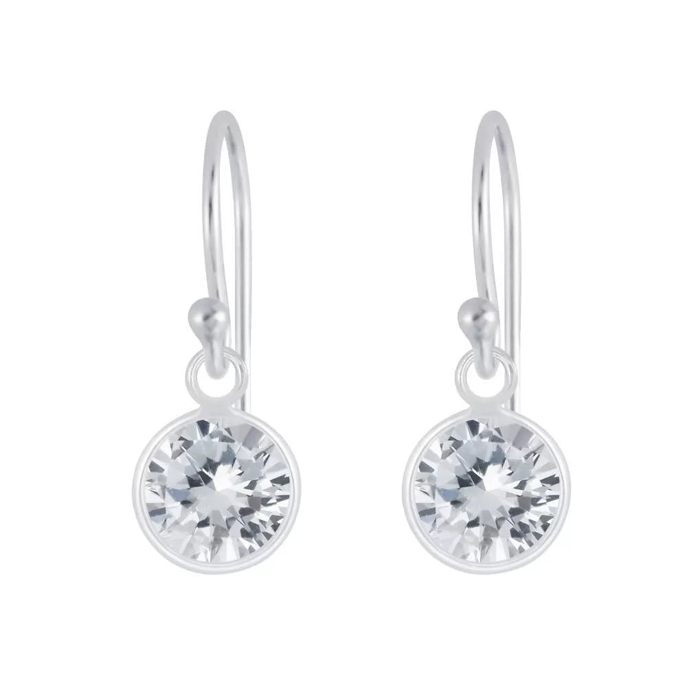 Ørepynt, Rund Cubic Zirconia, 7 mm. Sølv.