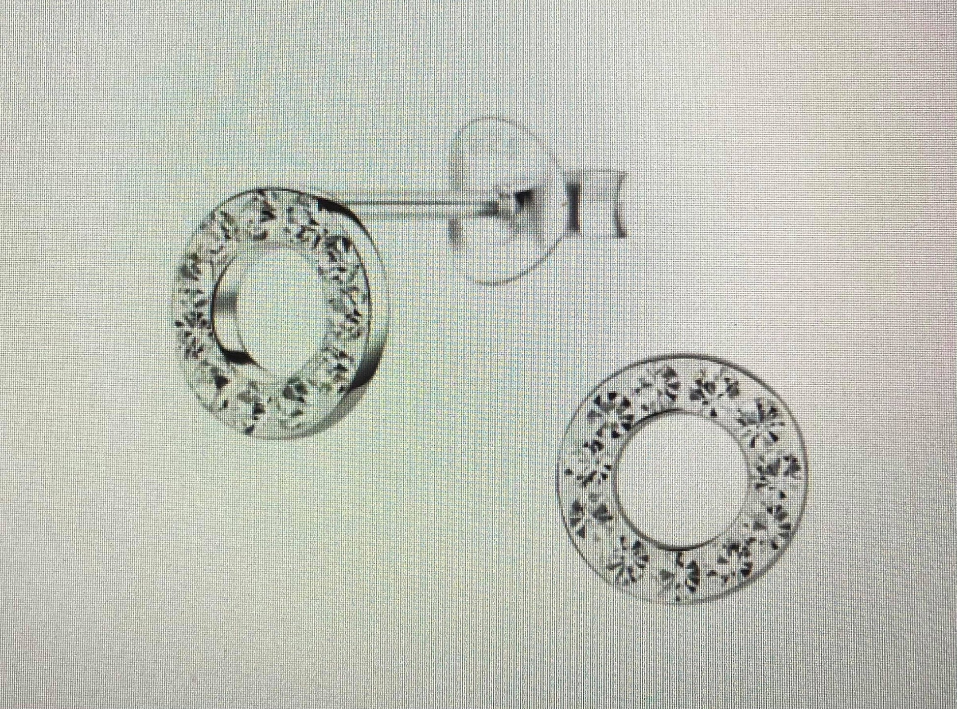 Ørepynt, Sirkel m/ krystall. Sølv.