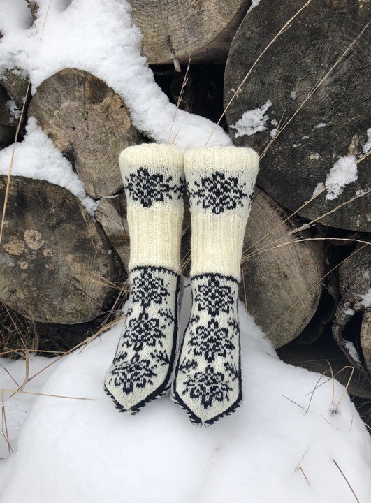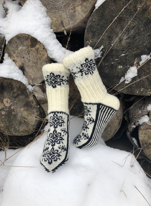 Garn: Forsterket Merino. 100 g ca 205 m. 2 farger. På bildet: natur + sort. 1 nøste av hver farge.