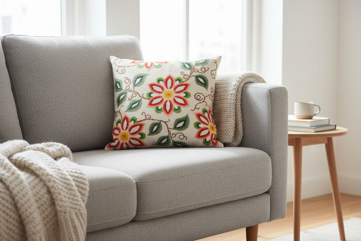 Broder din egen pute - Fargeglade Blomster.