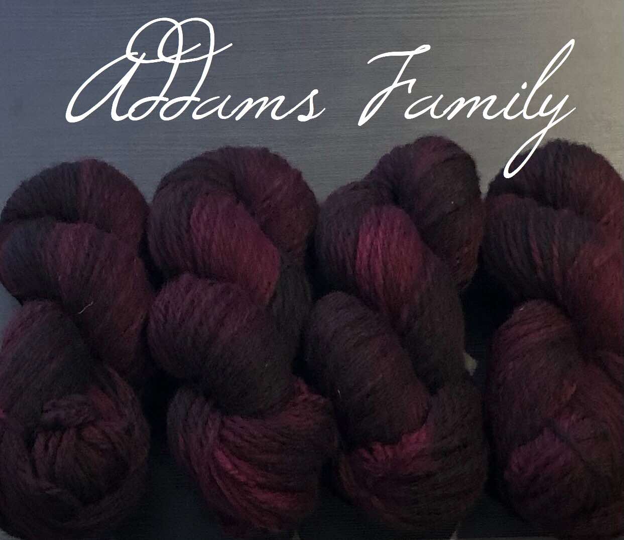 Håndfarget Vams fra Rauma. Addams Family. Melert. Store hesper. 100 g: ca 166 m.