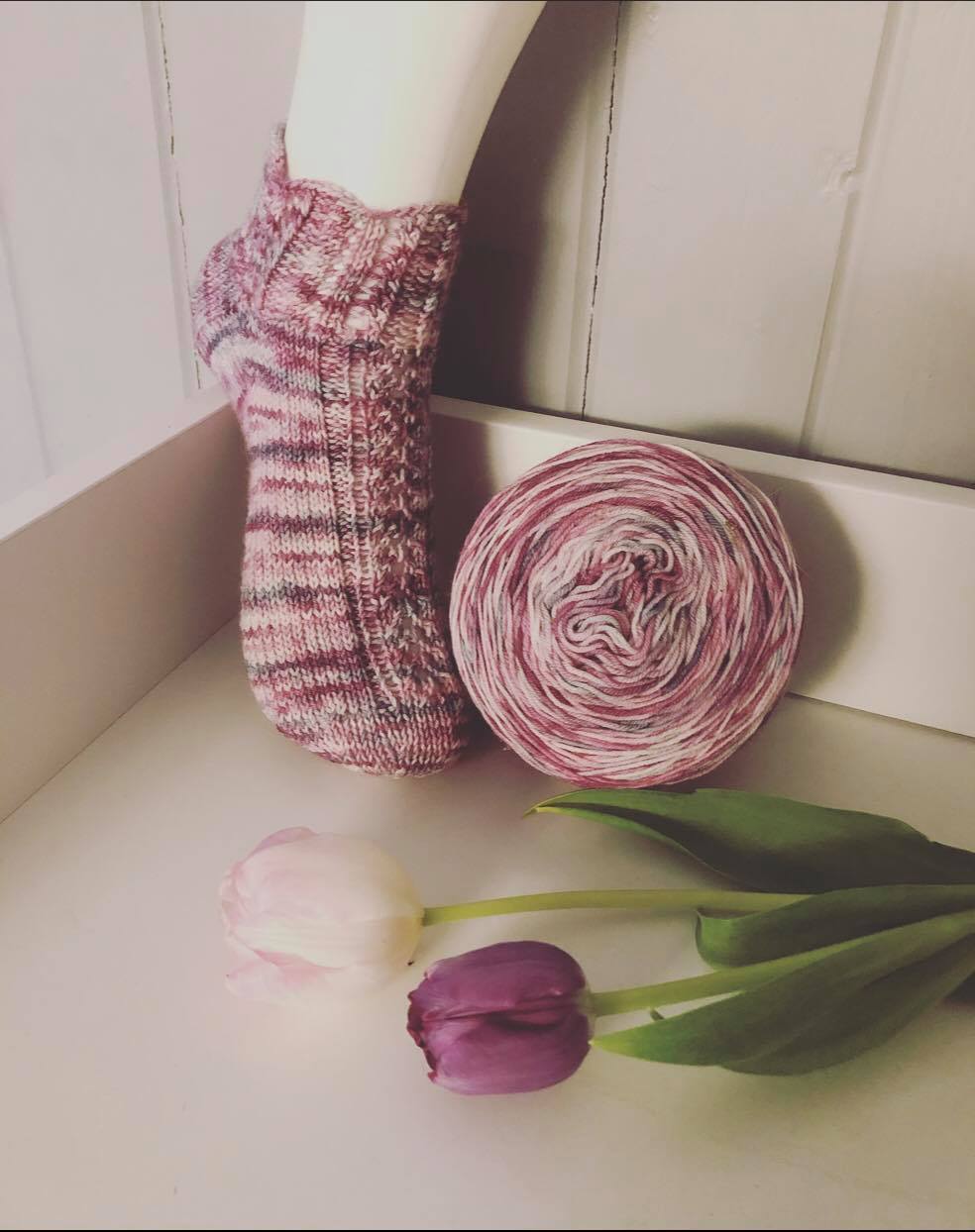 Klatrerose - ankelsokker. Designet av Elena Rise.