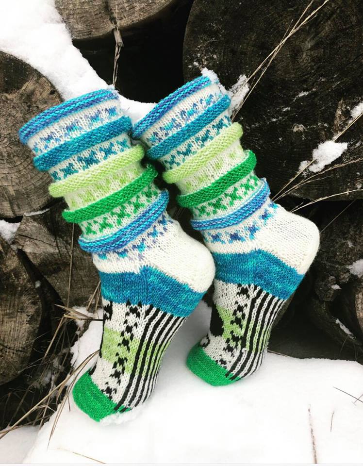 Garn: Forsterket Merino. 100 g: 420 m. Her har du sjansen til å bruke opp litt restegarn, -så bruk de fargene du har, og lag fargerike sokker.