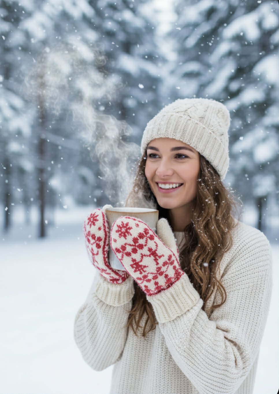 Vottene kan strikkes i Kvitlammets håndfarget Finull fra Rauma + Fjære fra Hillesvåg. Fargene på bildet: Vermillon Rød + naturhvit.