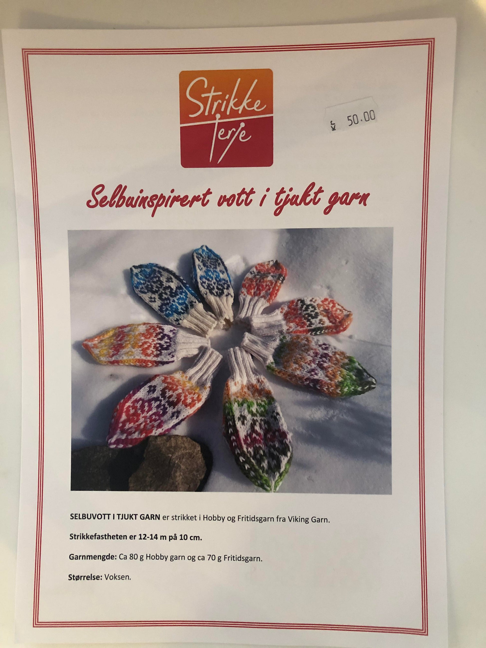 Selbuinspirert vott i tjukt garn - Printet oppskrift. Designer: Terje Tjelle, @strikketerje